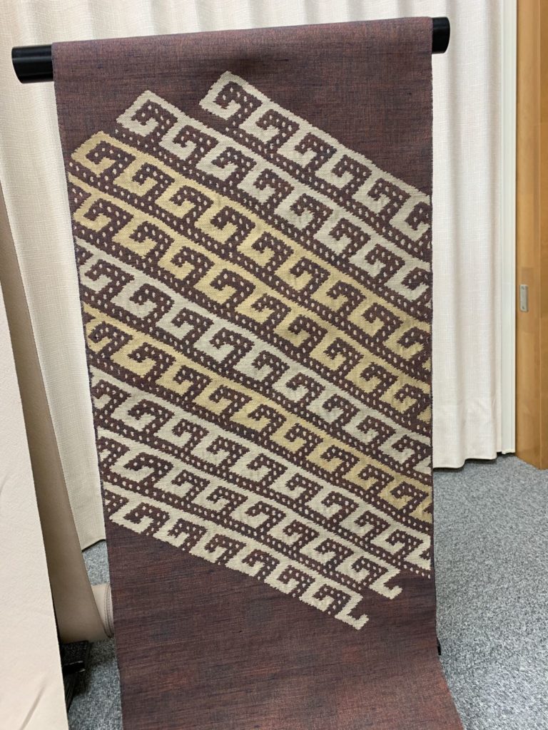 柄は古代インカ遺跡のナスカ文様からとっています。しゃれた帯です。